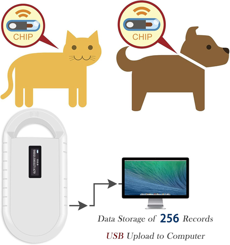 Lector de microchips para perro con chip RFID de mano de 134,2 kHz 125kHz, escáner EMID, lector de microchip de animales para control de acceso